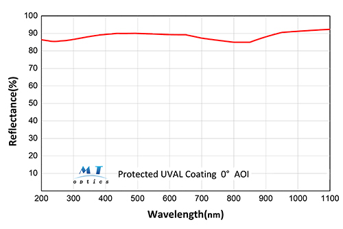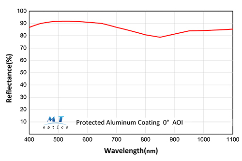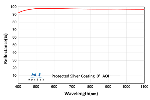 金屬反射膜 是一種采用鋁、銀、金等金屬材料,通過電子束蒸發(fā)或磁控濺射制備的光學(xué)功能涂層,該涂層利用金屬中自由電子的強反射特性,在較寬的波長范圍(紫外至紅外)內(nèi)實現(xiàn)高反射率(例如銀膜在可見光下的反射率>95%);該涂層制備工藝成熟,光譜響應(yīng)范圍寬,具有一定的光吸收損耗,適用于需要高反射率和低損耗靈敏度的場合,例如光學(xué)反射鏡、激光腔反射鏡、紅外探測器光路、太陽能集熱器等,是傳統(tǒng)反射式光學(xué)系統(tǒng)中的核心器件。