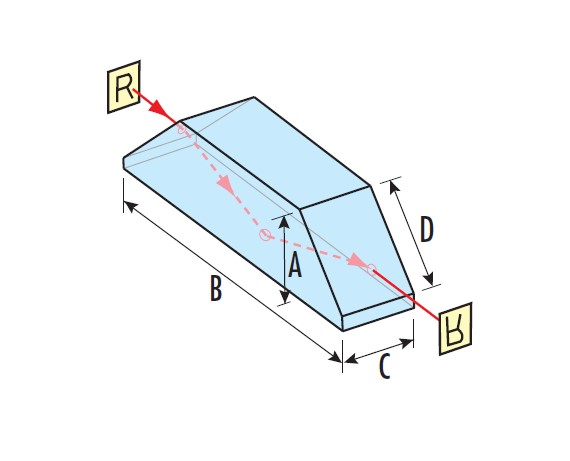 道威棱鏡 它有兩種應(yīng)用,主要用途是用作旋轉(zhuǎn)器,它可以旋轉(zhuǎn)圖像但不會(huì)使光束偏轉(zhuǎn),當(dāng)棱鏡繞輸入平行光線旋轉(zhuǎn)某個(gè)角度時(shí),圖像會(huì)旋轉(zhuǎn)該角度的兩倍,非常重要的是,該應(yīng)用必須與平行或準(zhǔn)直光束一起使用,并且大型方形反射面應(yīng)保持非常干凈;另一種用途是用作回射器,在這種應(yīng)用中,它相當(dāng)于一個(gè)直角棱鏡。
